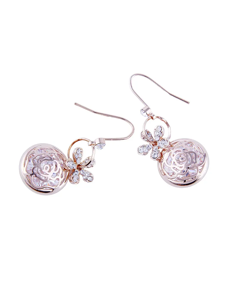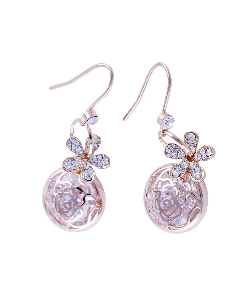 Flower Hollow Filled Zirconia Dangle Earrings