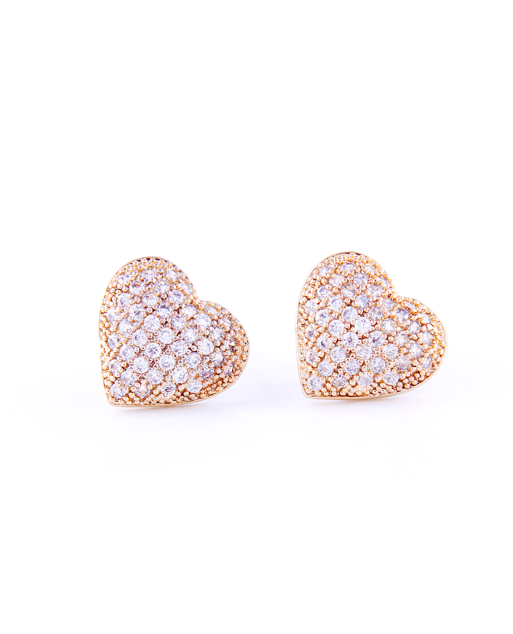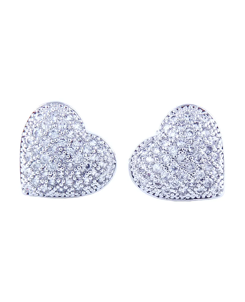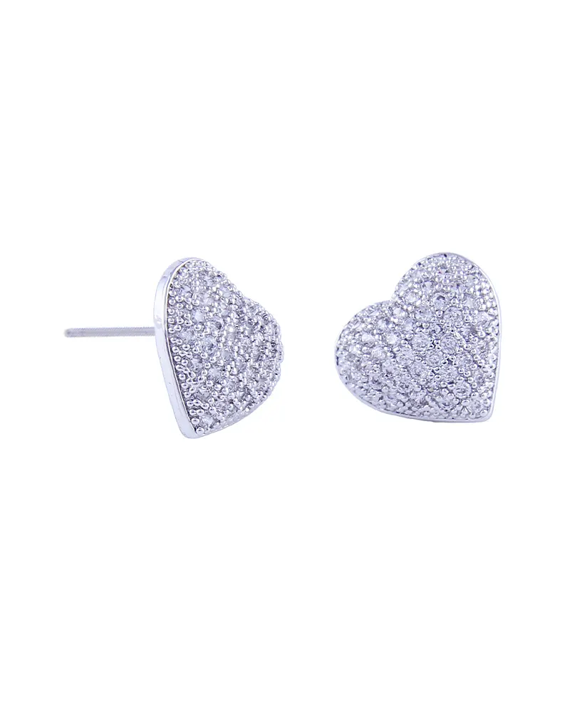 Heart-shaped Full Rhinestone Silver Pin Earrings