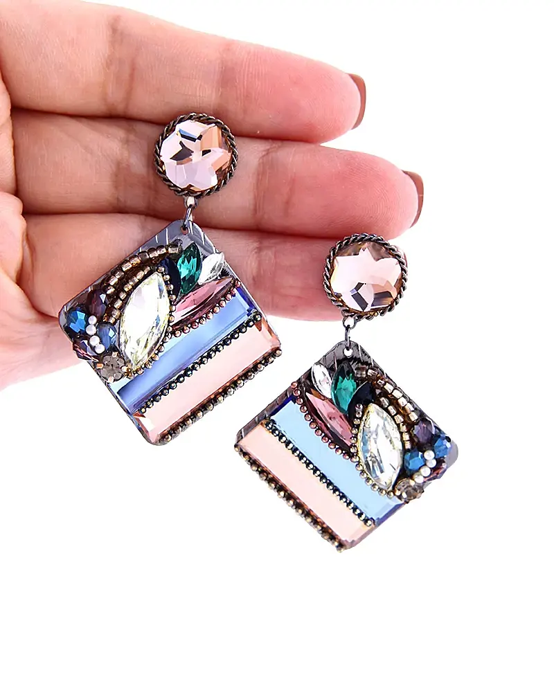 Square Colorful Sparkling Women’s Earrings